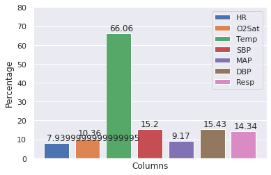 plt.xlabel('Columns')