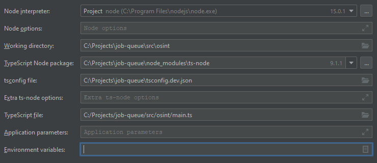 ...//other options根据这一点,我使用的是ts节点回购中的WebStorm和README.md,据我所知,我可以用自定义的tsconfig更新Environment Variables。因此,在这种情况下,我需要两个tsconfig文件在回购,为ts-节点和生产。所以问题是:也许还有另一个TS_NODE_FLAG,特别是module编译器选项?所以我可以运行带有标志的ts节点,这会覆盖这个小参数吗?