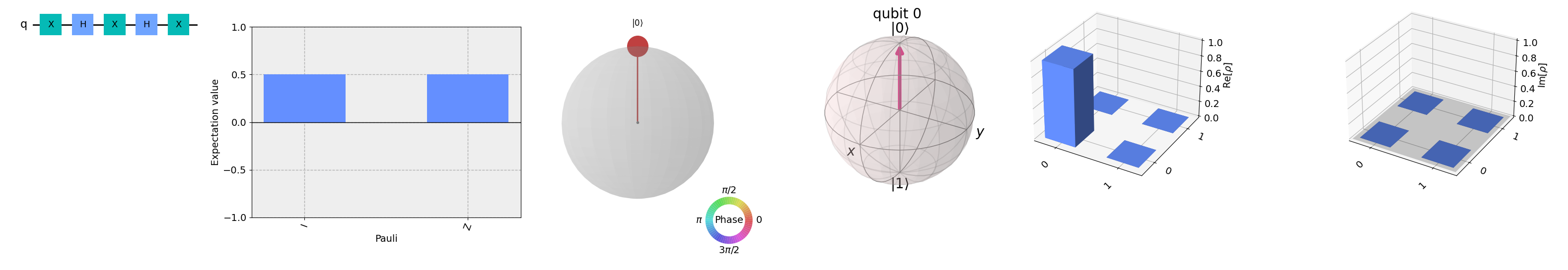 q_0: ┤ X ├┤ H ├┤ X ├┤ H ├┤ X ├