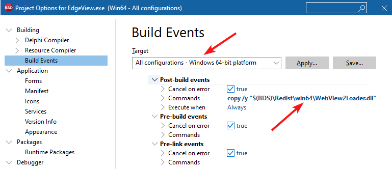很难尝试运行如何在Windows 10上使用TEdgeBrowser组件的示例。