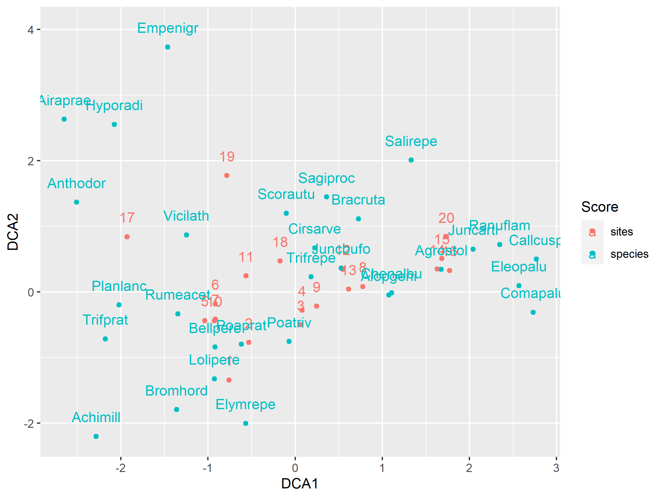 ggrepel::geom_text_repel(aes(dune.dca))如果有人有一个简单的建议,那就太好了。