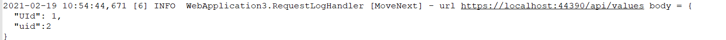 2021-02-16 10:24:17.5632|2|INFO|Microsoft.AspNetCore.Hosting.Diagnostics|Request finished in 141.7419ms 200 |url: http://myapp/OrderUpdated|action:这里是如何使用DelegatingHandler进行请求日志的编辑