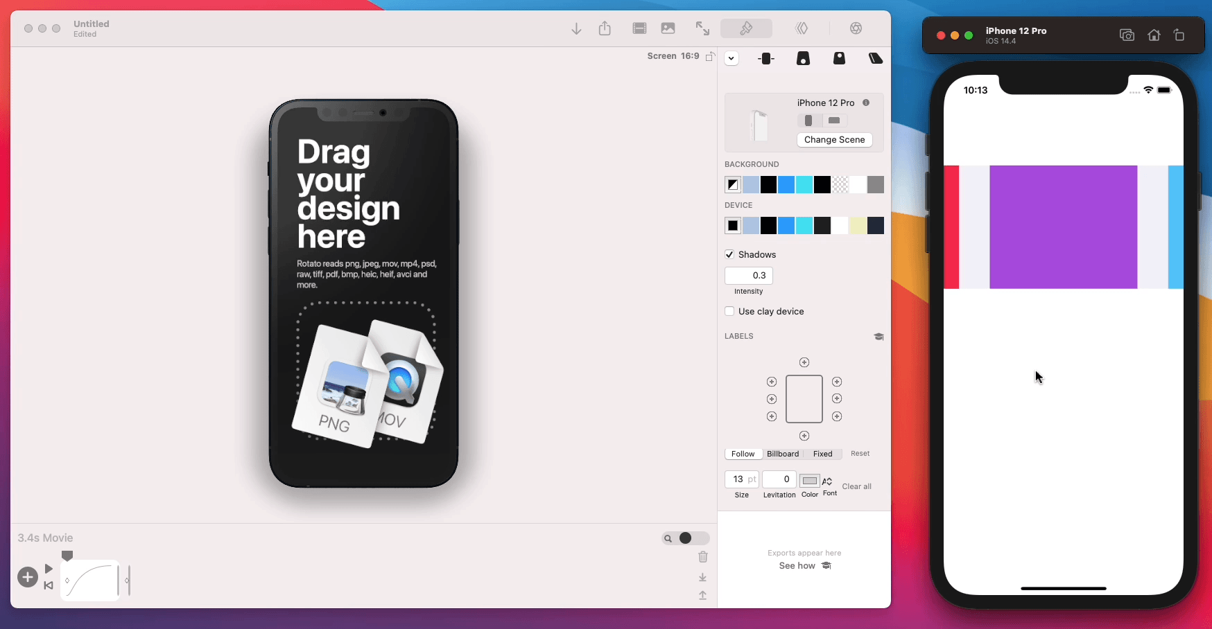 正如@ivanmoskalev所说,您需要自己编辑映像(Xcode没有内置的功能)。你可以在互联网上寻找模型帧,但我更喜欢这个叫做红薯的应用程序。