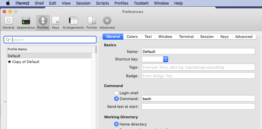 我尝试在iTerm2中重写shell,以停止使用zsh,而使用bash,但这也没有帮助: