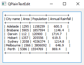 我在PrettyTable对象中有一些数据。当我将这些数据打印到stdout时,表就会被完美地打印出来!但是当打印到QPlainTextEdit (使用table.get_string())时.它失去了正确的格式。
