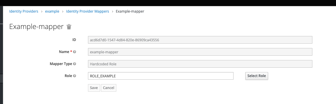 ./kcadm.sh create identity-provider/instances/<IDP_name>/mappers -r <REALM_NAME> -s name=<MAPPER_NAME> -s identityProviderAlias=<IDP_ALIAS> -s identityProviderMapper=oidc-hardcoded-role-idp-mapper -s config.role=<ROLE_NAME>字段identityProviderMapper是Mapper Type,在您的例子中,它将是oidc-hardcoded-role-idp-mapper。