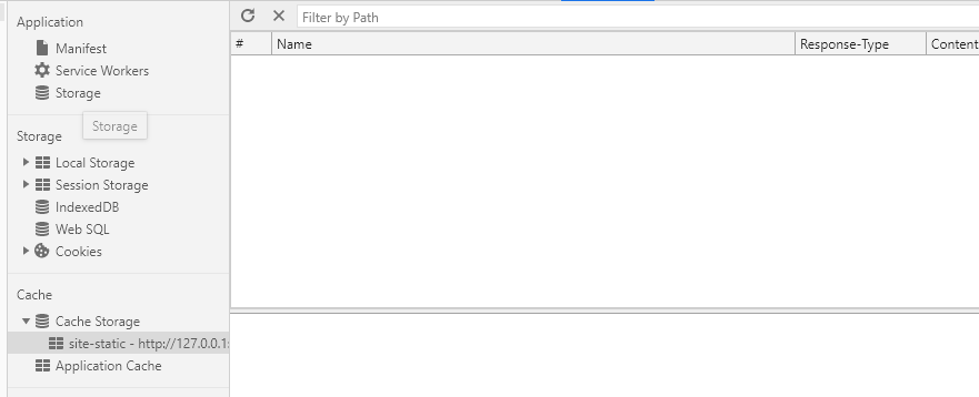 我正在开发一个Progressive Web App,我正在使用Chrome Developer Tools。我已经安装了我的Service Worker,并与Fetch事件一起激活。我已经在我的sw.js文件中添加了缓存代码。当我重新加载页面并查看Cache Storage时。我确实看到了静态站点,但是没有任何东西看起来是缓存的。