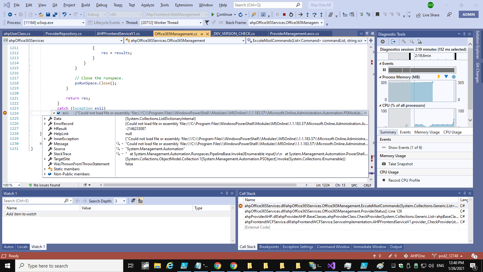 然后,我得到了错误的格式加载模块的例外。执行命令是Connect-MsolService