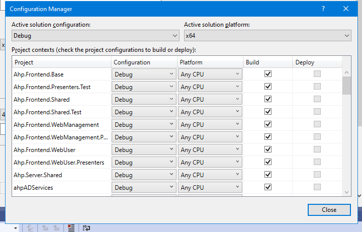 希望休息一切都很好。如果应用程序在本地IIS下运行,则无需在visual studio配置中更改配置。否则,所有程序集(包括解决方案中的程序集)的Configuration设置可能会工作。