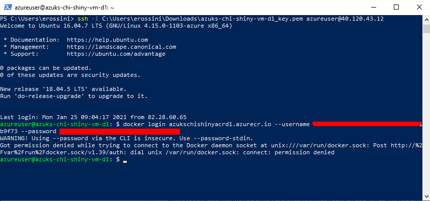 在Microsoft文档之后,我创建了一个服务主体。因此,我有用户名和密码用于从Azure容器注册表中提取图像。我试着在本地提取图像,而且效果很好。要连接到容器注册表,我使用以下命令: