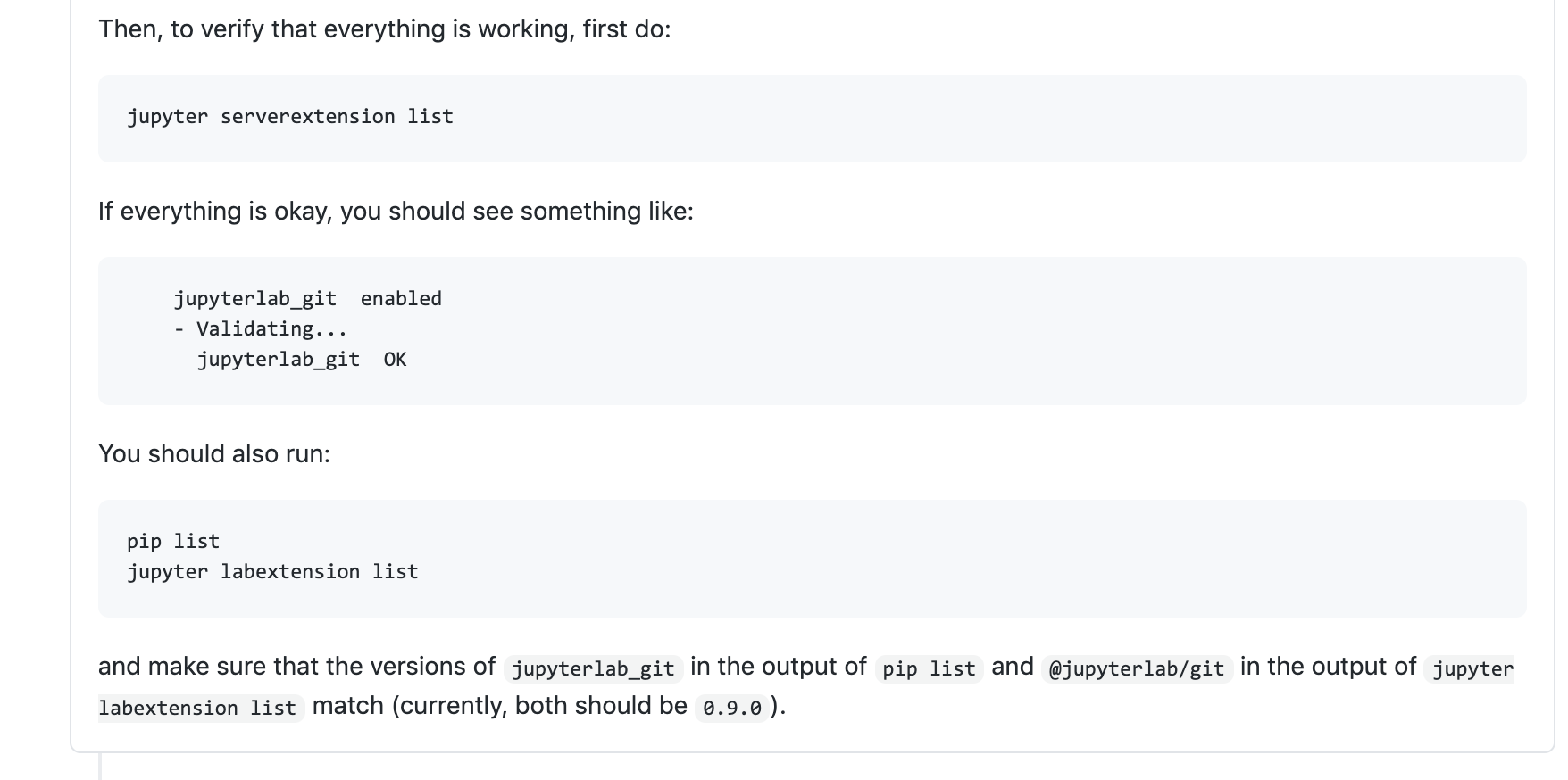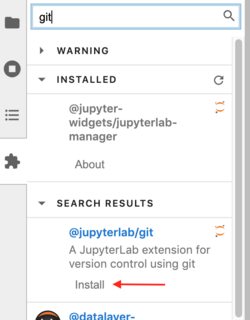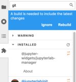 17.现在还有最后一件事:当我返回并通过朱庇特实验室的扩展管理器安装Git扩展时(就像我最初所做的那样),然后我再次运行jupyter labextension list,我发现Git扩展是“预发布”版本v0.30.0b1,这可能就是为什么在步骤7中,我得到了前端扩展和后端扩展不匹配的错误消息。
