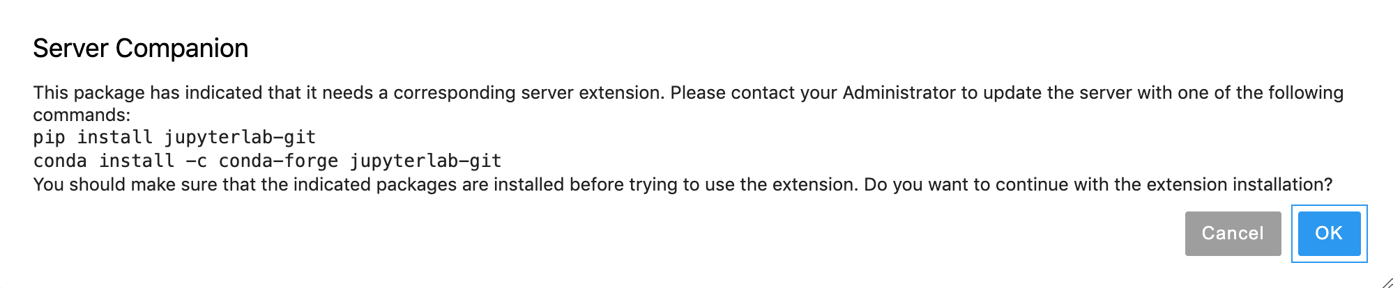 4. I单击“OK”,然后运行pip3 install jupyterlab-git