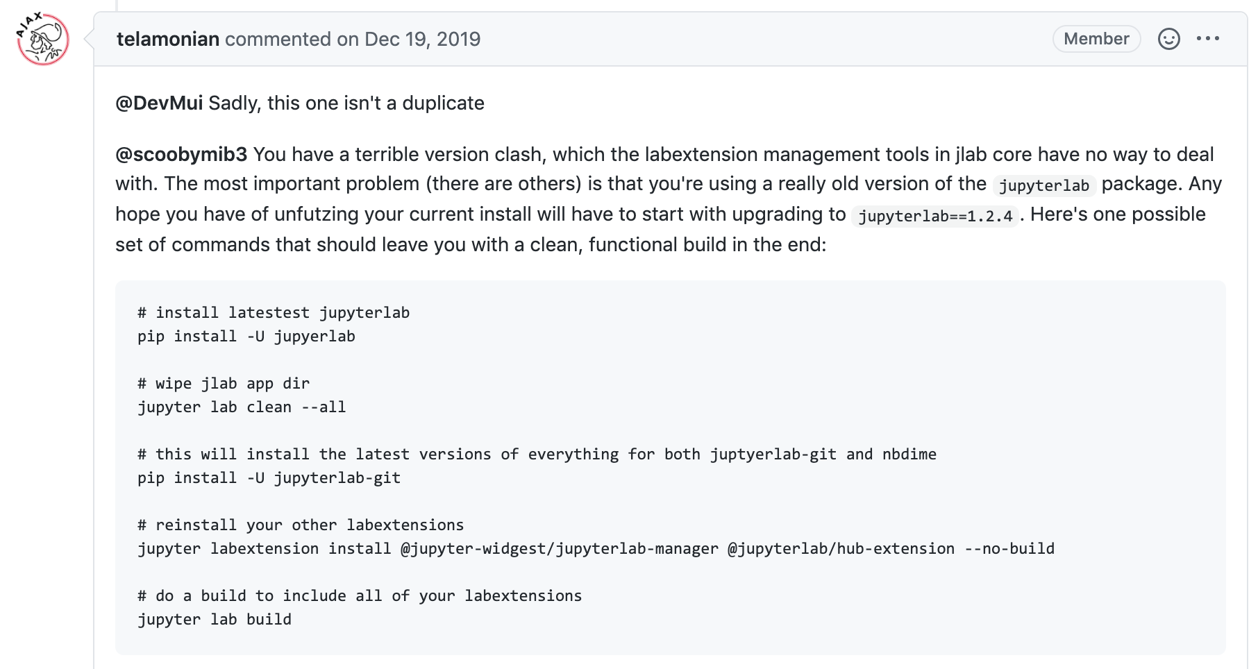 下面是我安装木星实验室和Git扩展的步骤,然后尝试解决扩展版本错配问题: