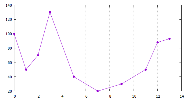 plot t=0 $Data u (t):(t=t+$2,$3) w lp pt 7 notitle