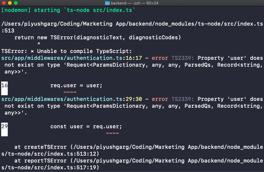 src/app/middlewares/鉴证:16:17-错误TS2339:属性'user‘在'Request’类型上不存在。