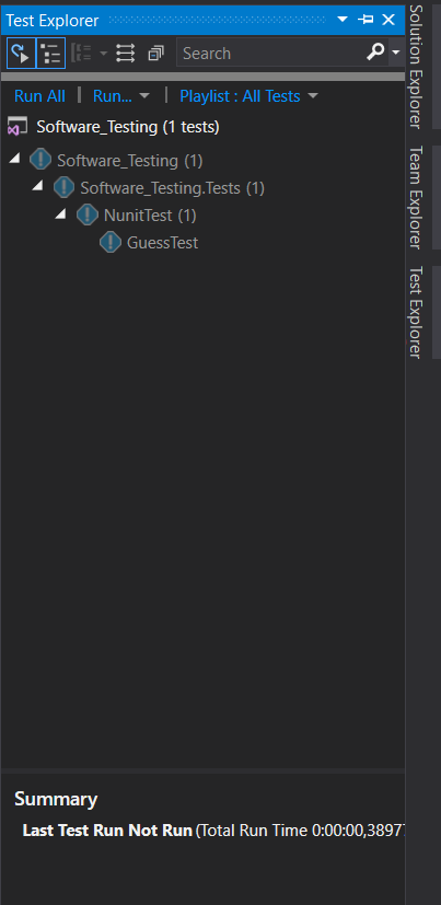 在我的asp.net核心项目(vs 2017)中,我想运行我的测试方法,但是ı在测试资源管理器中单击'run‘,我在测试资源管理器控制台中得到"Last Not Run (Total ' bla ')“响应。我已经下载了我的Nunit NuGet软件包。我认为,在我的启动类或其他地方的asp.net核心测试中,ı缺少了一些测试配置,或者有些NuGet包丢失了:/ Thx,提前发送给每个人。