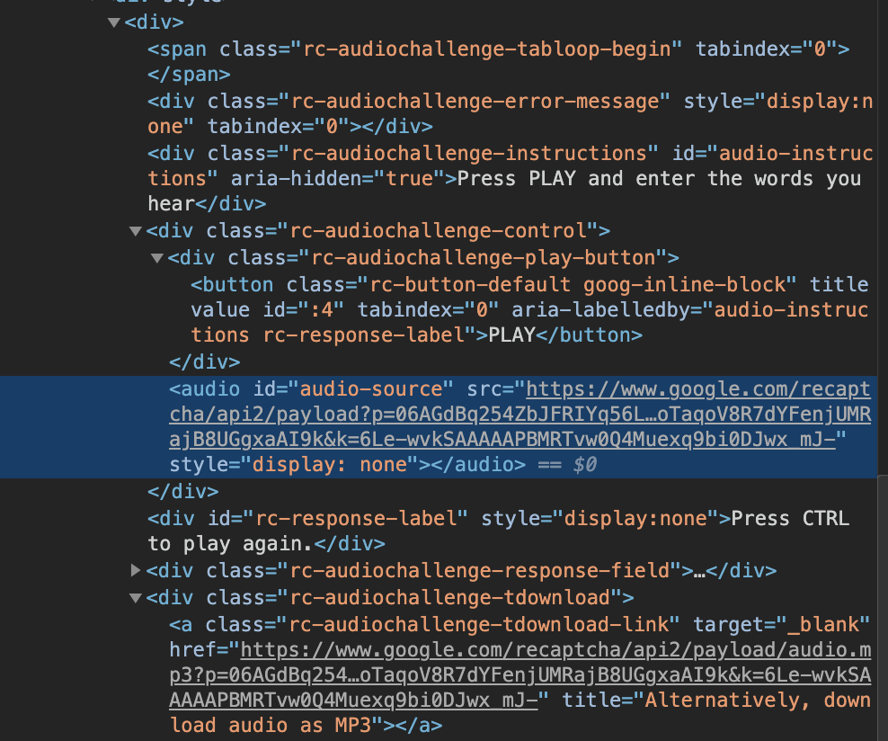 EC.element_to_be_clickable((By.CSS_SELECTOR, "a.rc-audiochallenge-tdownload-link"))).text
