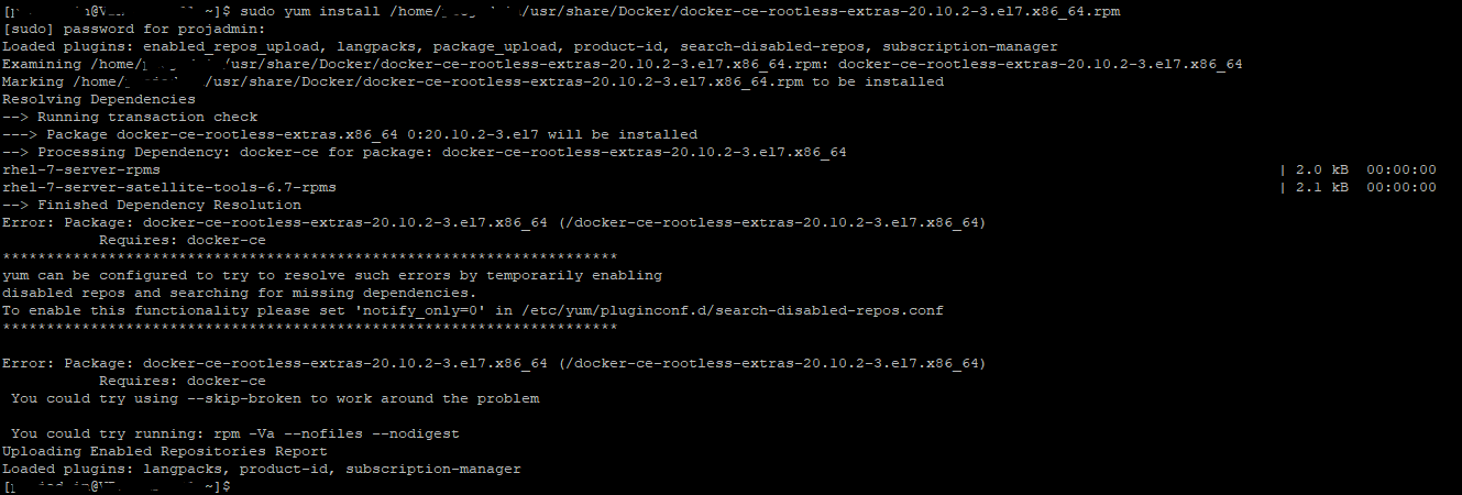 sudo yum install /home/projuser/usr/share/Docker/docker-ce-rootless-extras-20.10.2-3.el7.x86_64.rpm我得到了一个错误,表明需要进行对接。