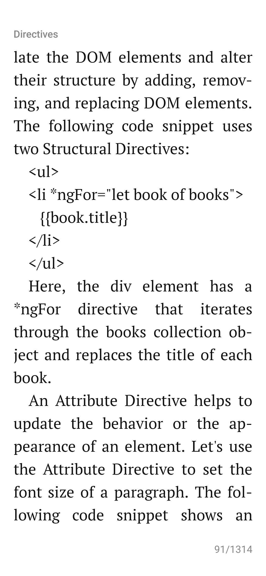 但是在这个例子中,只使用了一个指令,这就是*ngFor。这负责为books数组的每个对象创建一个books元素。