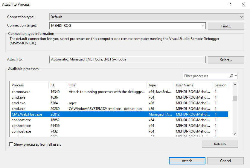 有关更多信息:附加到使用Visual调试器运行的进程