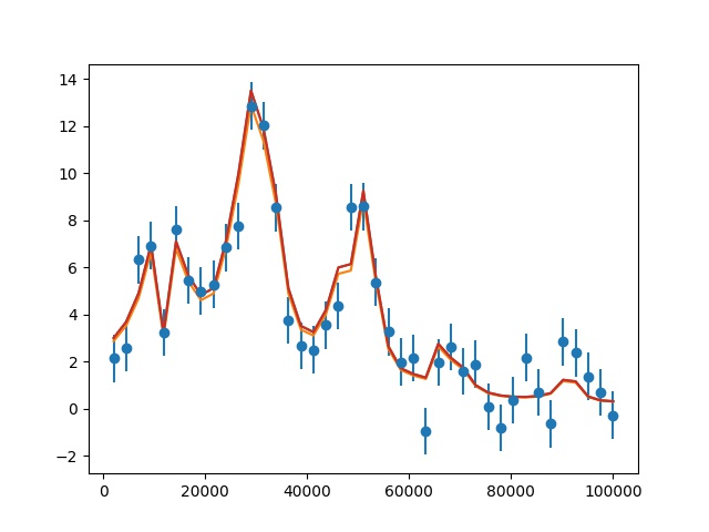 我正在将玩具实验数据与模拟数据相匹配。目前,玩具数据是从仿真中插值,并添加了一个人为的不确定性。