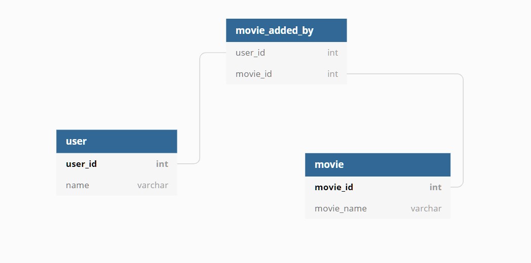 这里,movie_added_by用户模型需要将一个映射到多个,类似地,电影将映射到movie_added_by。