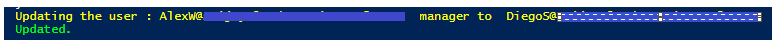 Write-Host "Updating the user :" $row.'User Username' " manager to " $row.'Manager Username' -ForegroundColor Yellow
