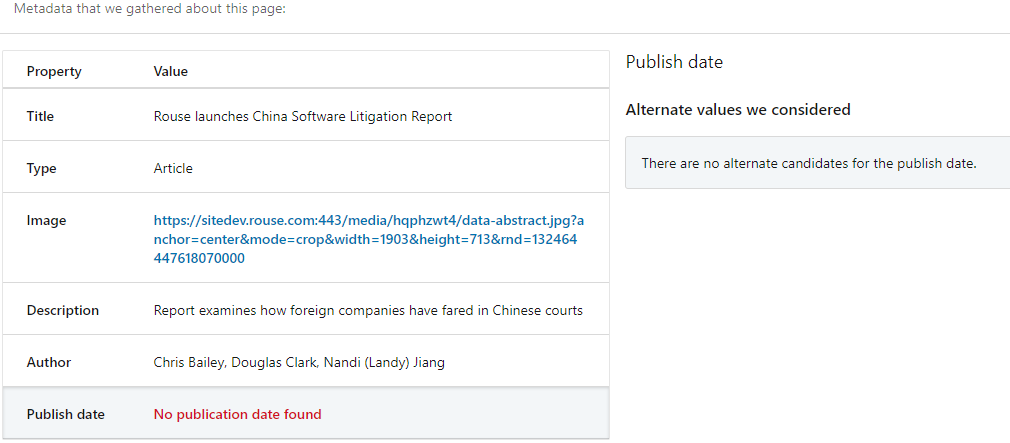 <meta name="generator" content="Chris Bailey, Doug Clark, Nandi (Landy) Jiang" />我参考了这个链接为Linkedin创建元标记-发布日期“未找到”,但它不起作用。