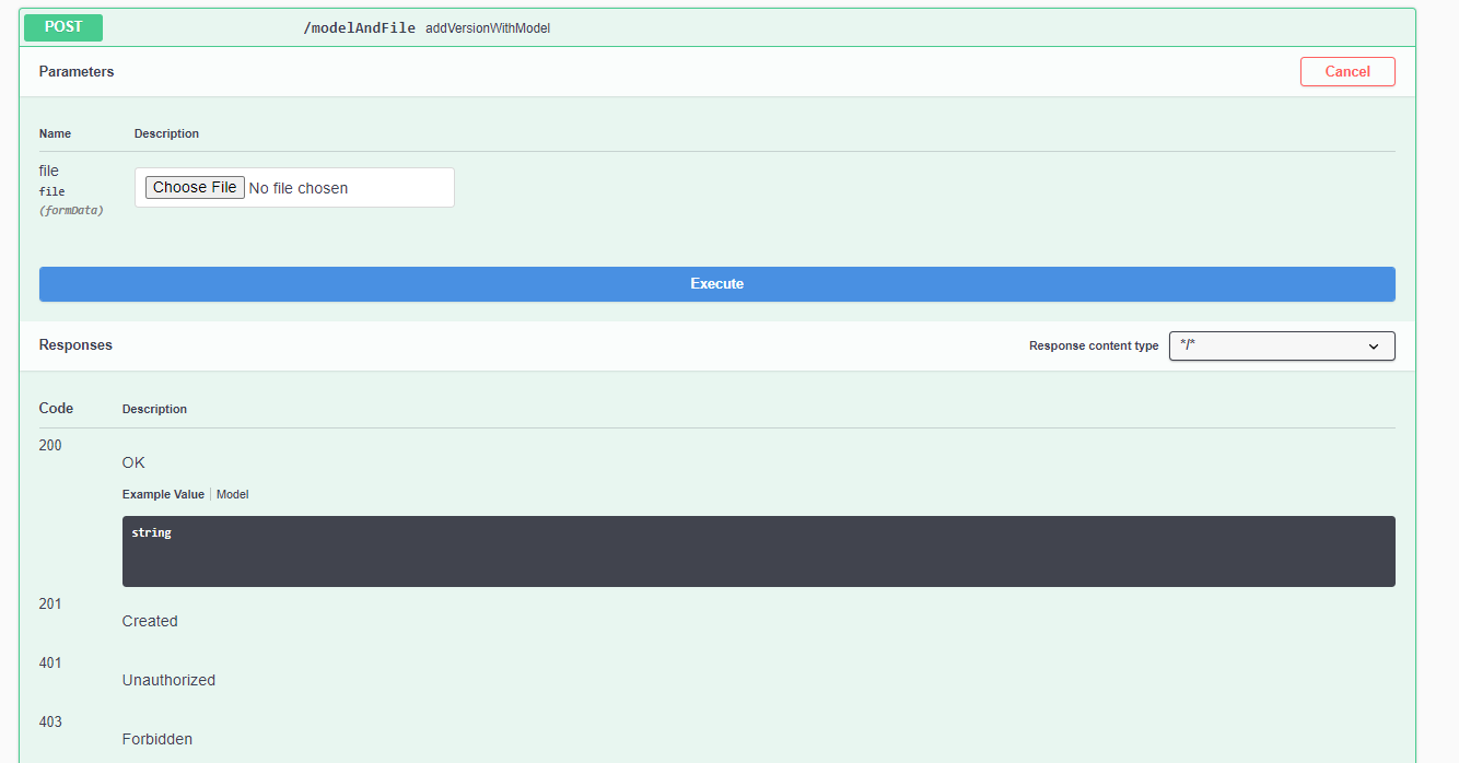 在本例中,在swagger上,我只看到文件上传而没有模型: