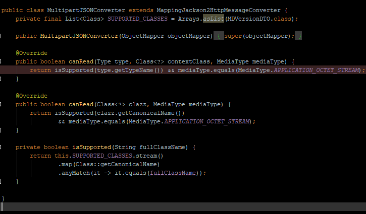 octet-stream,2案例:定义了新的转换器类,它肯定适用于所需的类(在我的例子中是MDVersionDTO.class),而且当它像那样实现它时,肯定会使用ovveride canRead()方法。