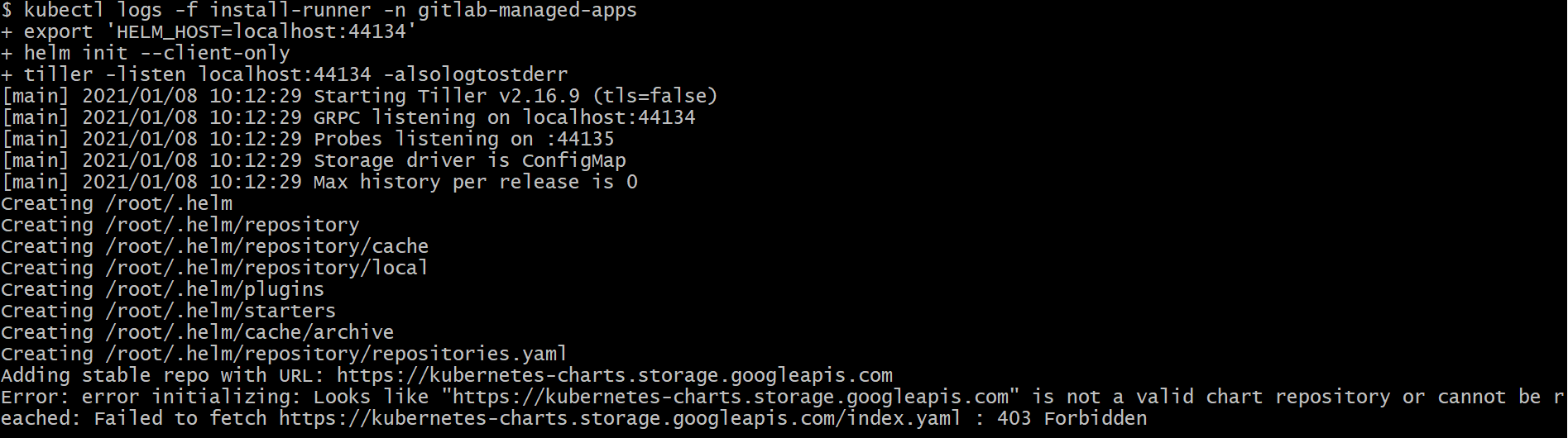 我正在尝试在Azure Kubernetes服务(AKS)中的集群中安装Gitlab Runner,但是我有两个错误: