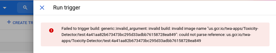 此外,当我尝试手动运行云构建触发器时,它会显示以下错误: