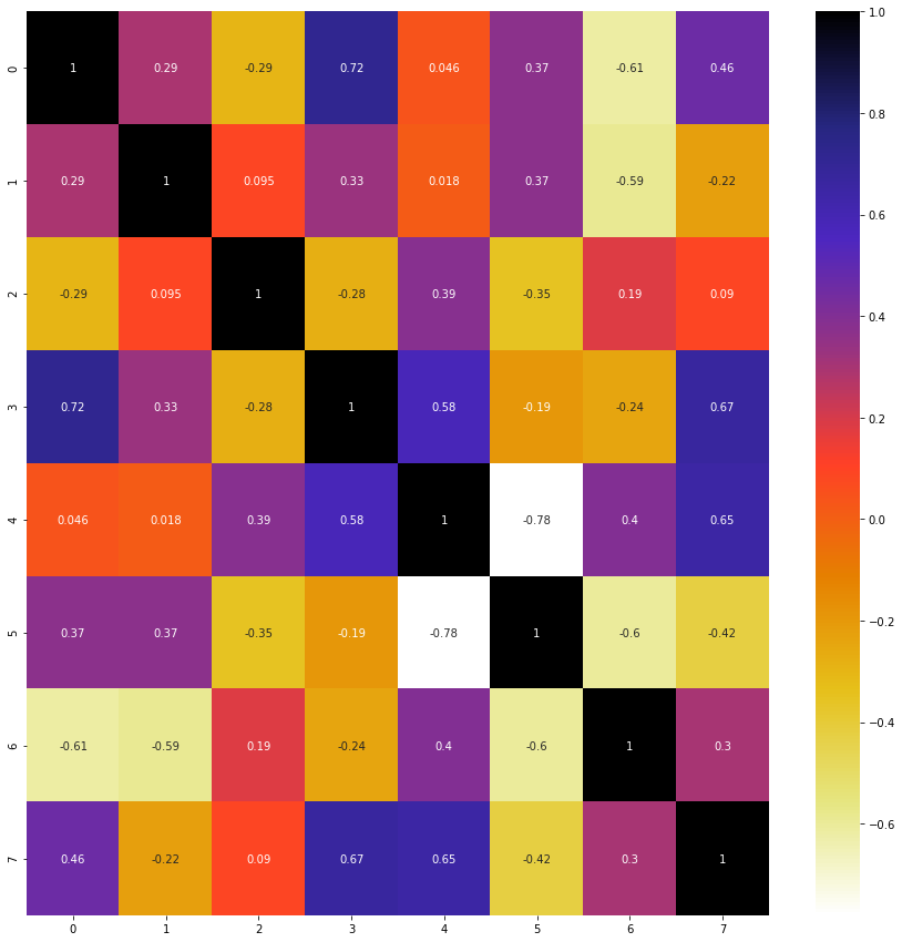 #(0, 1, 2, 3, 6, 7)删除相关列并检查矩阵级别(独立列的数值):