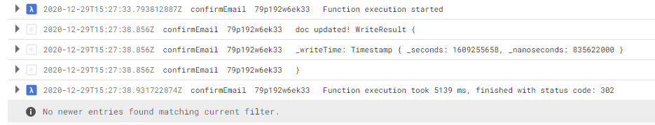 Function execution started将try/catch添加到confirmEmail.js之后的其他日志