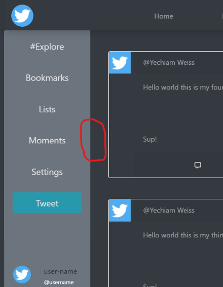 我正在尝试创建一个带有浮动箭头按钮的侧边栏,该按钮将折叠条形图(有点类似于这个代码)。