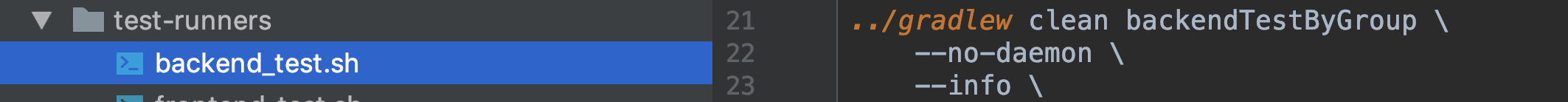gradlew位于项目根上,所以它被调用为../gradlew clean,它比backend_test.sh文件高出一个级别-