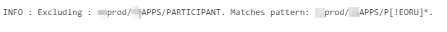 USER/EXCLUDE-PATTERN其中USER是表所有者或Oracle。PATTERN确实尊重glob格式的在文档中描述。例如,我添加了