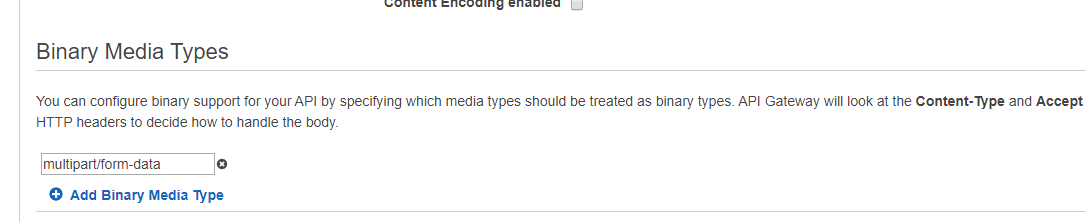 另一个需要完成的配置是,必须正确配置API网关设置以支持二进制数据类型。