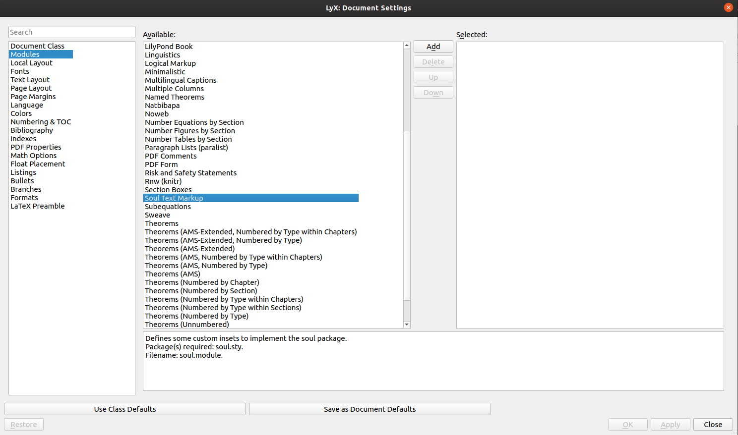 更多信息是关于模块wiki页面的。我从未听说过Facebook的LyX社区。我建议加入我们的lyx用户邮件列表。有许多知识渊博和友好的LyX用户互相帮助。