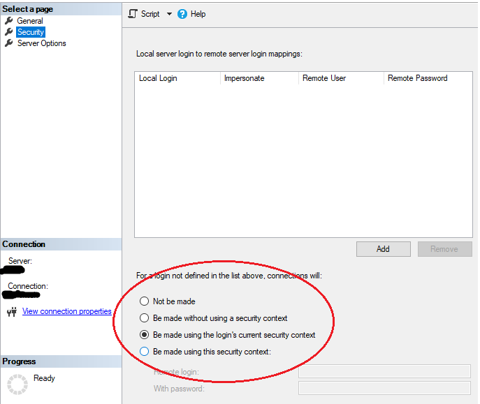 EXEC LinkedServer1.msdb.dbo.sp_start_job @job_name = N'RunExeFile';您需要配置RPC并确保设置了调用安全上下文: