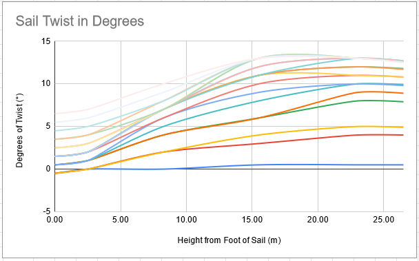 我正试图用图表来说明帆中的扭转,显示各种扭转量的影响。