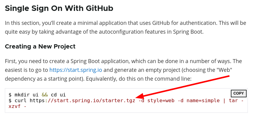 我遵循了一个Spring教程Spring和OAuth2,该教程使用curl命令启动项目: