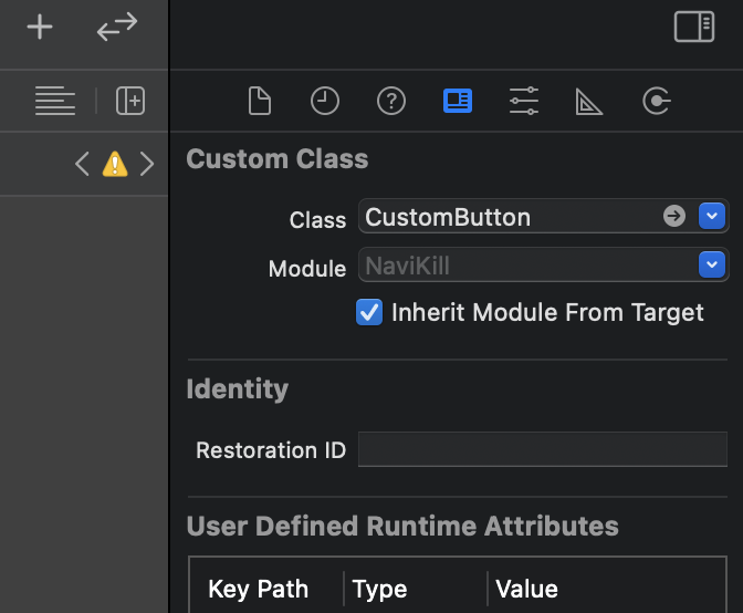 }然后,在Xcode接口(故事板)中,对于每个按钮,您都希望使用这种样式。在标识检查器中设置自定义类。