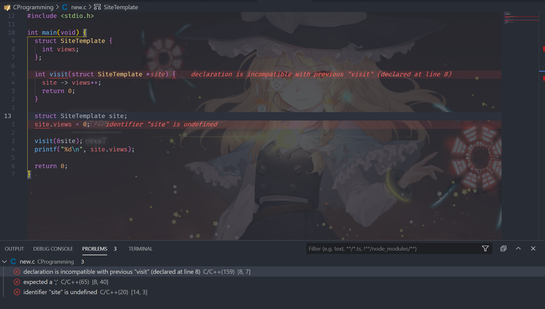 declaration is incompatible with previous "visit" (declared at line 8)截图: