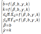 我在图中得到了四个微分方程的耦合系统。我有4个函数(xG;yG;γ;β)及其导数。它们都是同一个自变量t的函数。