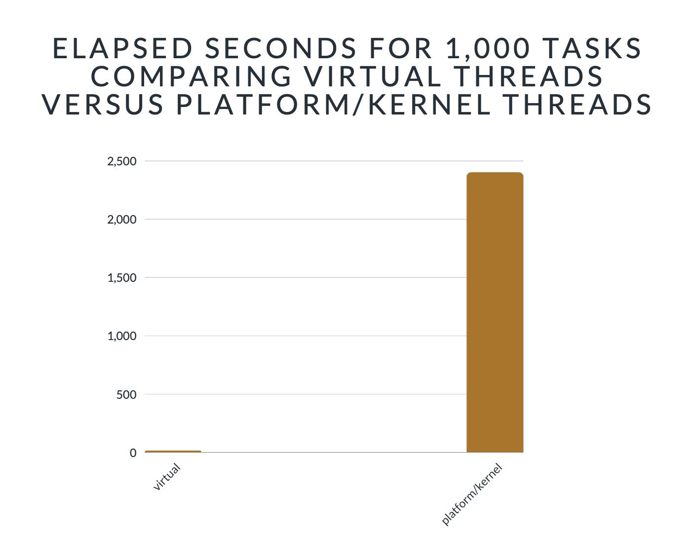 其次,虚拟线程只需几秒钟就能完成所有任务,而对于常规线程来说,则是分钟、小时或天。