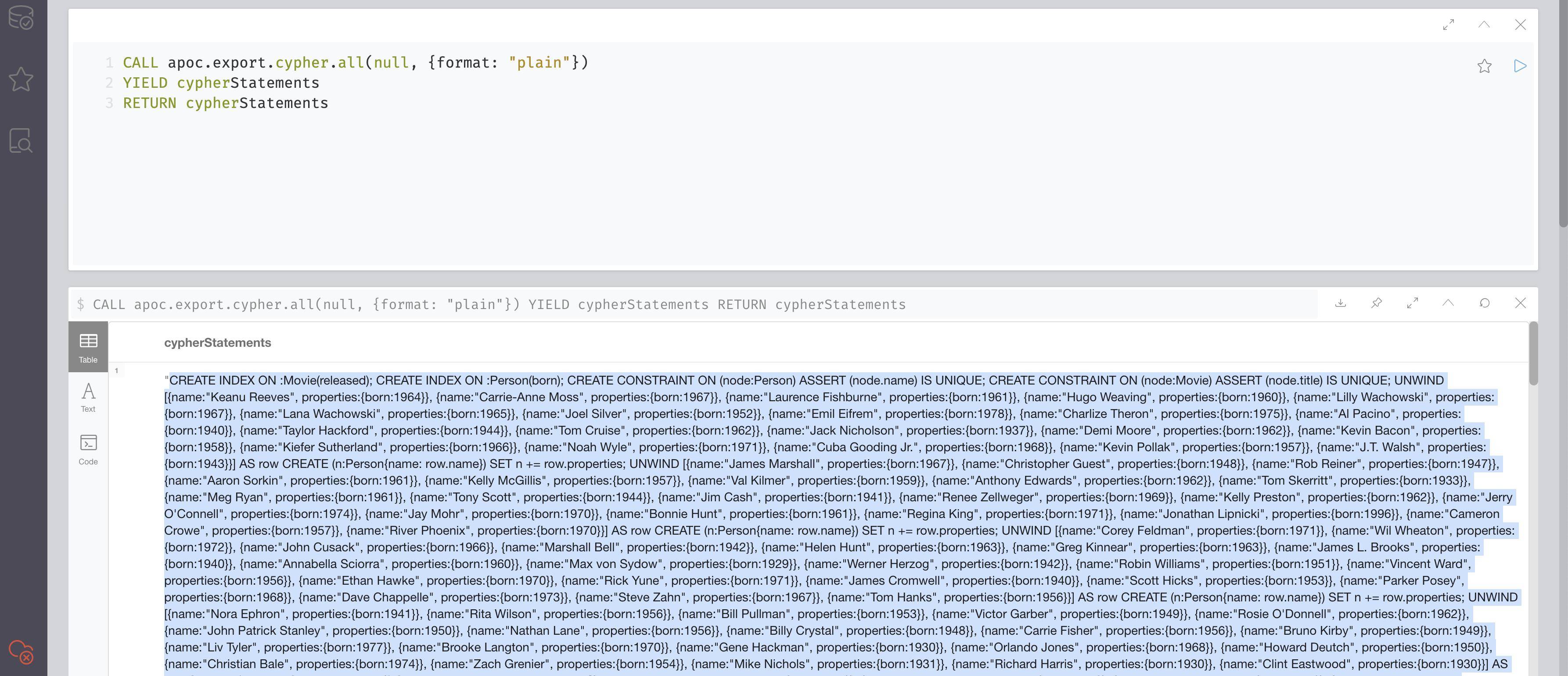 CALL apoc.export.cypher.all(null, {format: 'plain'})