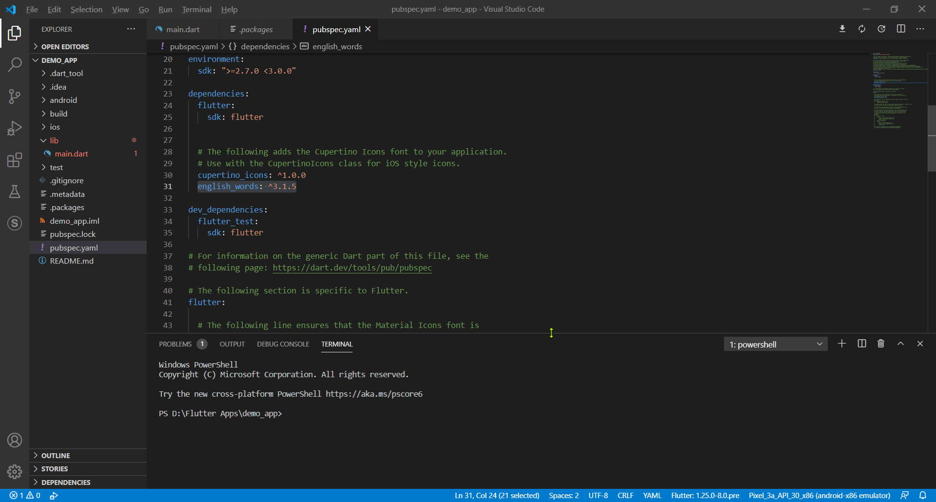 我刚开始与颤振,遵循谷歌代码为第一个颤振应用程序。