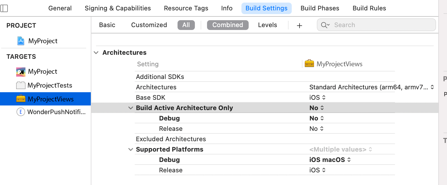 XCode 13在M1上解决了这个问题。不需要在生成设置中设置其他设置。