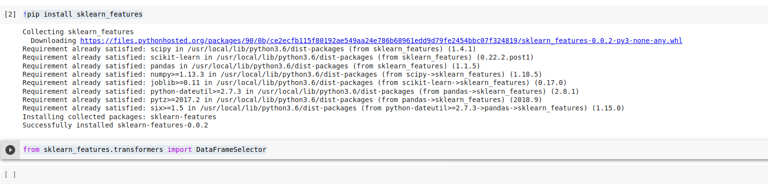 from sklearn_features.transformers import DataFrameSelector来自colab的例子